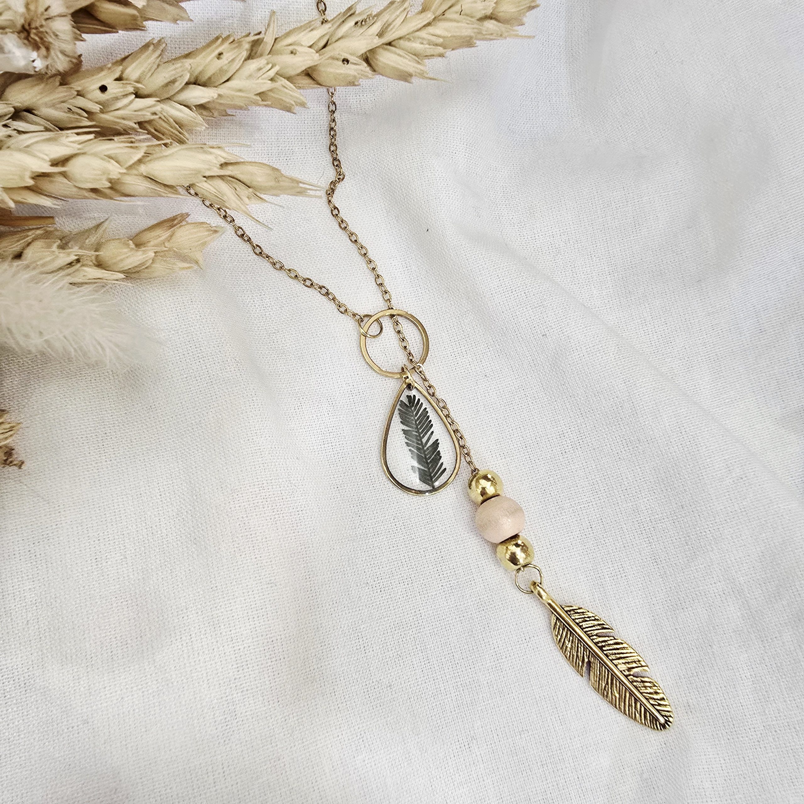 Fern lariat necklace gold