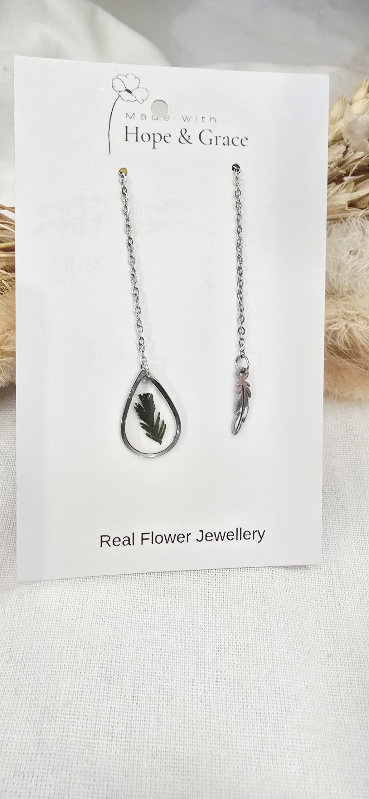 + Free ShippingEach pair of these ear-threads holds a real fern frond I gathered from the bush on slow, peaceful mornings with Hope by my side.